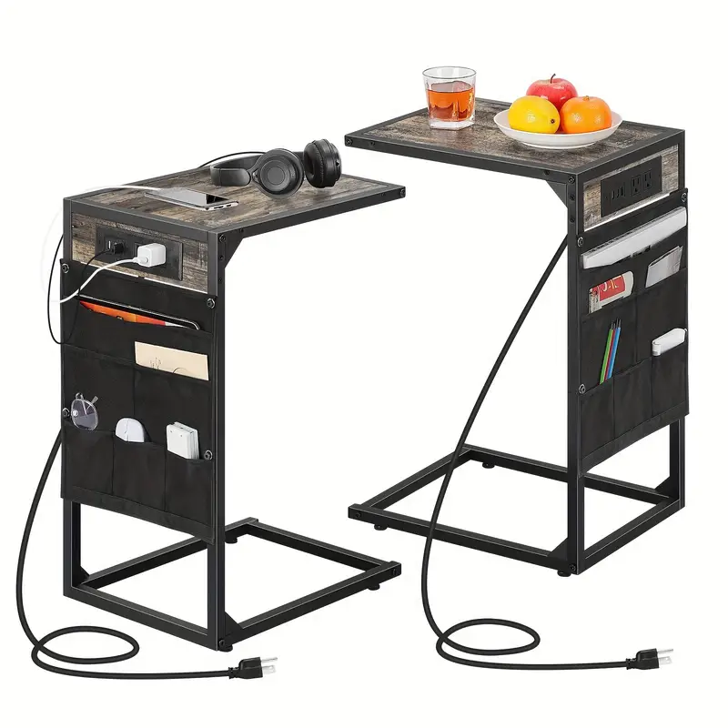 طاولة جانبية شكل C قابلة للنقل، مناسبة للمنزل، غرفة المعيشة، السوفا، غرفة النوم، وهي طاولة متعددة الوظائف مزودة بخيارات محطة شحن وتكييفية تخزين