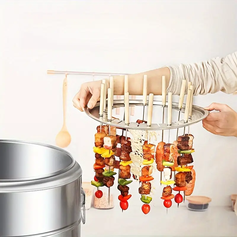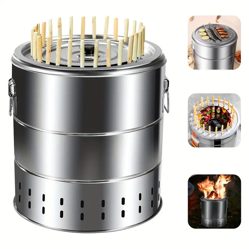 Portable Smokeless Charcoal Barrel Grill, Smoked Grill, Smokeless Fire Pot, Outdoor Stainless Steel Surrounding Grill Skewer Grill, with 28/20 Skewer Racks, Cooking Grid and Drip Tray, Grill Tool Set, Diameter 15.4/13.4 Inches, Christmas Gift, Ideal for Parties, Picnics and Camping