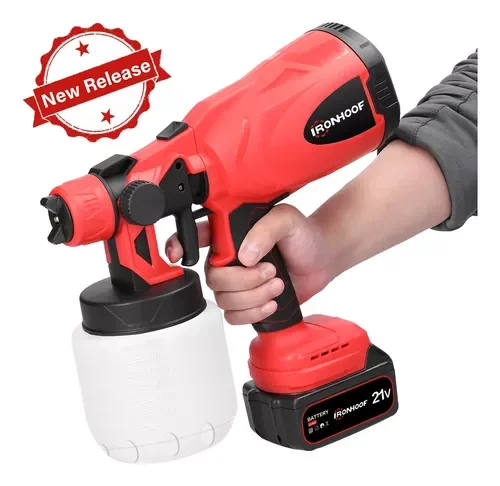 Пистолет-распылитель, 800 мл, беспроводной электрический распылитель краски, автомобильная мебель, стальное покрытие, аэрограф, совместимый с аккумулятором 18 В (цвет: 2 аккумулятора, красный)