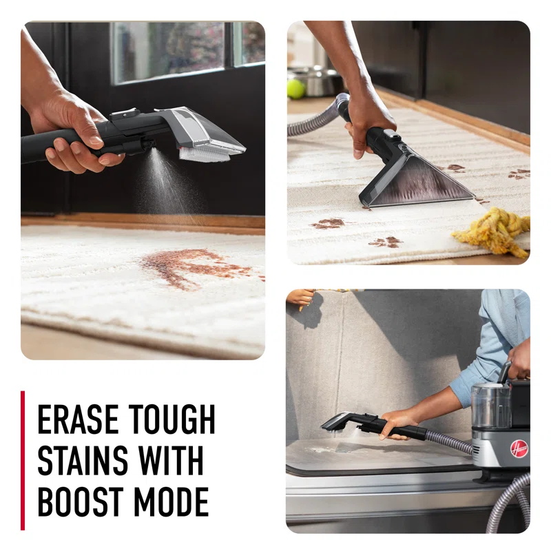 Permanently remove embedded dirt and stains with a trial-sized Hoover Oxy stain removing solution