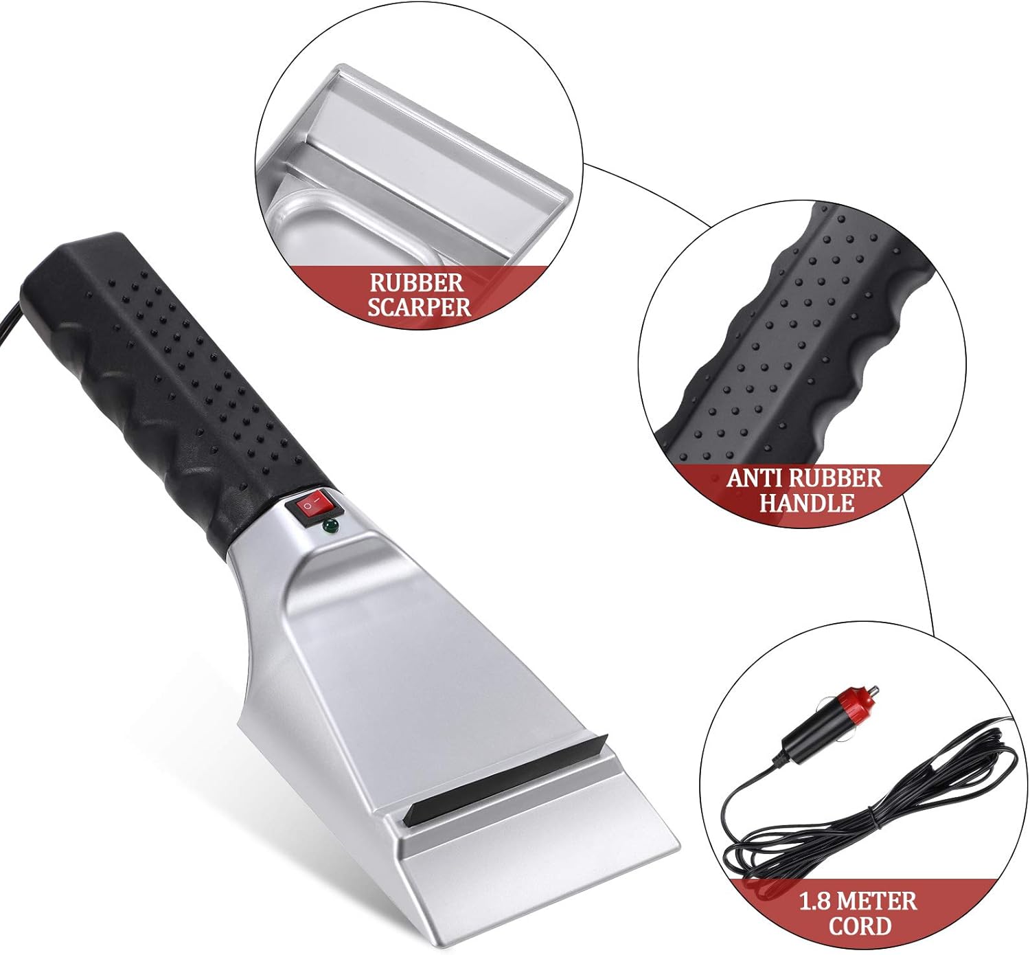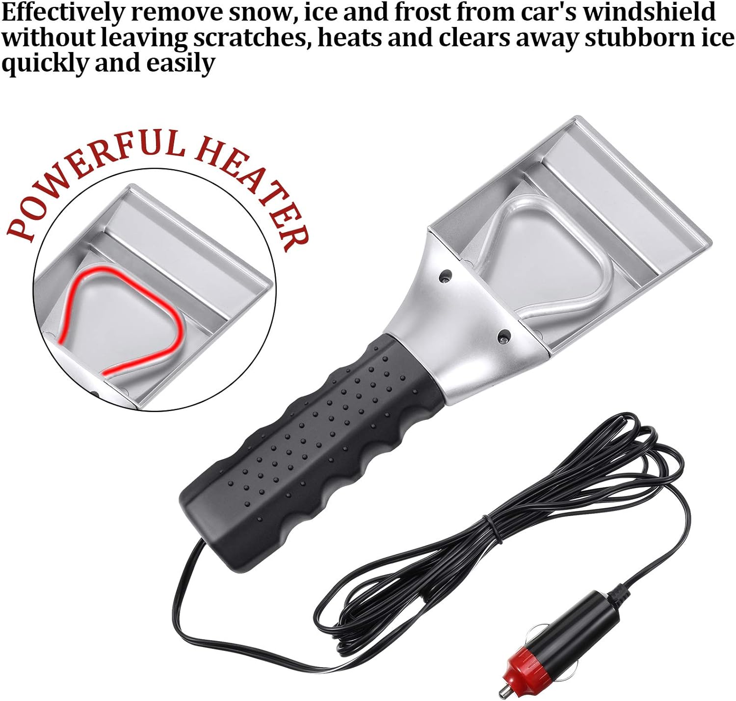 1. 12V heated ice scraper easily removes ice and snow while cleans the glass.